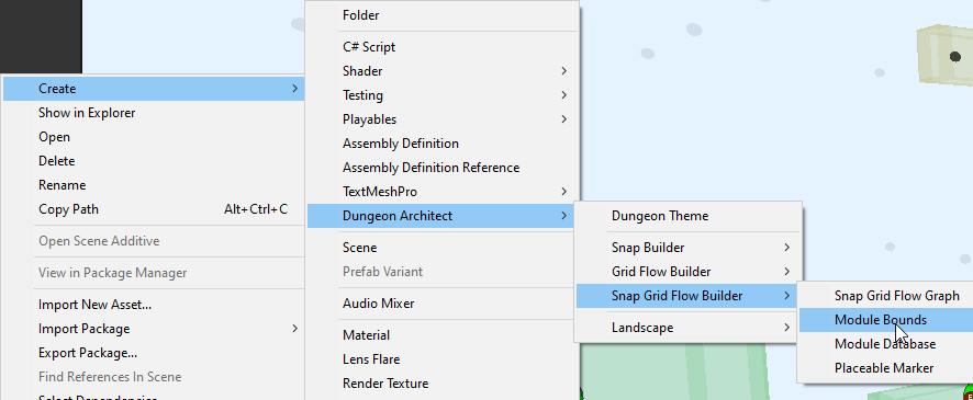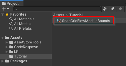 In the Projects tab, navigate to the desired folder and create the Snap Grid Flow Module Bounds